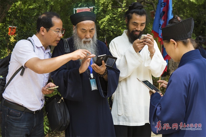近些年來,嶗山道教將道教符合時(shí)代發(fā)展的積極思想、優(yōu)良傳統(tǒng)、養(yǎng)生理念、積功累德、天人合一等教理教義曉諭世人,用弘揚(yáng)道教傳統(tǒng)論來促進(jìn)社會的和諧穩(wěn)定。圖為嶗山道士使用現(xiàn)代化通訊設(shè)備。