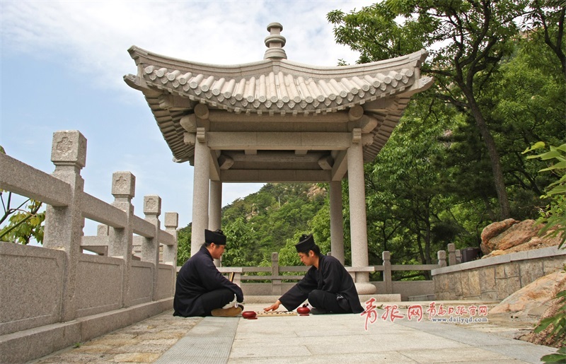 太清宮的道士們留須蓄發(fā),餐霞飲露,與明月清風(fēng)為伴,保持身體的清新潔凈,追求心靈的纖塵不染。他們過著清靜恬淡的生活,默默地守護(hù)在這里。虔誠的香客們紛至沓來,皆為問道。一步一階,步步虔誠;俯首叩拜,極為用心;合眼默念,默許心愿。圖為嶗山道士對弈。