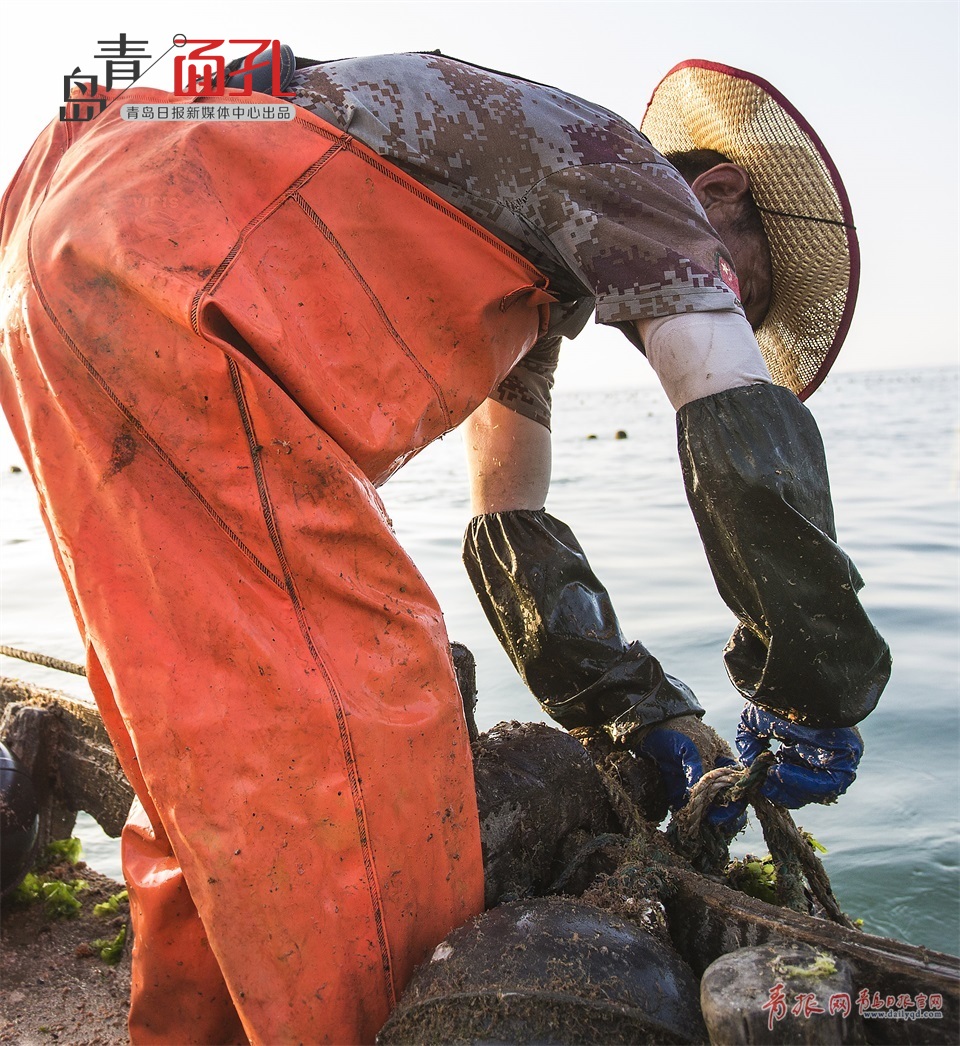 一方水土一方人,青島人一直懂得如何獲取自然的饋贈(zèng)??可匠陨?,靠海吃海,亙古不變,一地獨(dú)有的獲取食材的方式,創(chuàng)造出了親切的滋味,在鄉(xiāng)音的繚繞中,講述著我們?nèi)粘I畹臍v史。圖為老林一家人將扇貝從籠子里倒出來。