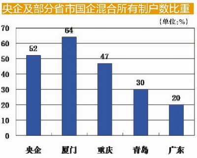 市國(guó)資委主任林杰說(shuō):“我市大部分國(guó)企都是有混合的,已實(shí)現(xiàn)混合所有制經(jīng)濟(jì)的占近60%”,央企混合的比例是52%,重慶是47%,青島是30%。