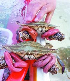 “每年1至3月份,本地的螃蟹還沒上市,市場上的螃蟹絕大多數(shù)來自江蘇啟東,來的時候多數(shù)帶著大皮筋?!币幻麡I(yè)內(nèi)人士說,一般隨著5月份后本地螃蟹大量上市,皮筋螃蟹才能逐漸消失。這名業(yè)內(nèi)人士說,大皮筋多是從螃蟹的批發(fā)環(huán)節(jié)綁上的,螃蟹的養(yǎng)殖戶一般很少有時間弄這些。