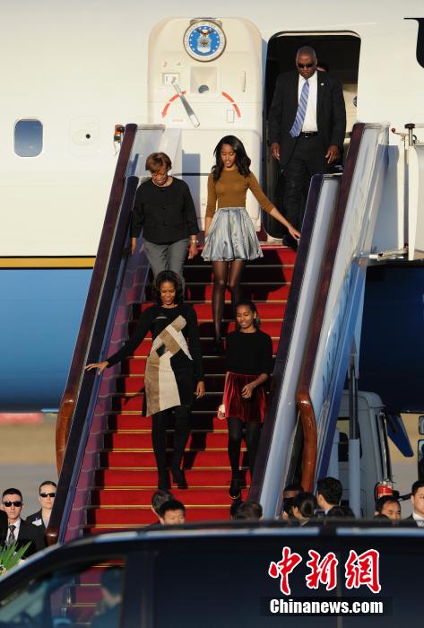 3月20日,美國(guó)總統(tǒng)奧巴馬的夫人米歇爾·奧巴馬乘專機(jī)抵達(dá)北京,開(kāi)始對(duì)中國(guó)的訪問(wèn)。同機(jī)抵達(dá)的還有米歇爾的母親瑪麗安·羅賓遜和兩個(gè)女兒瑪利亞和薩沙。侯宇攝