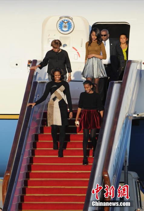 3月20日,美國總統(tǒng)奧巴馬的夫人米歇爾·奧巴馬乘專機抵達北京,開始對中國的訪問。同機抵達的還有米歇爾的母親瑪麗安·羅賓遜和兩個女兒瑪利亞和薩沙。侯宇攝