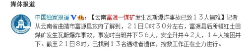 云南富源一煤礦發(fā)生瓦斯爆炸事故 已致13人遇難