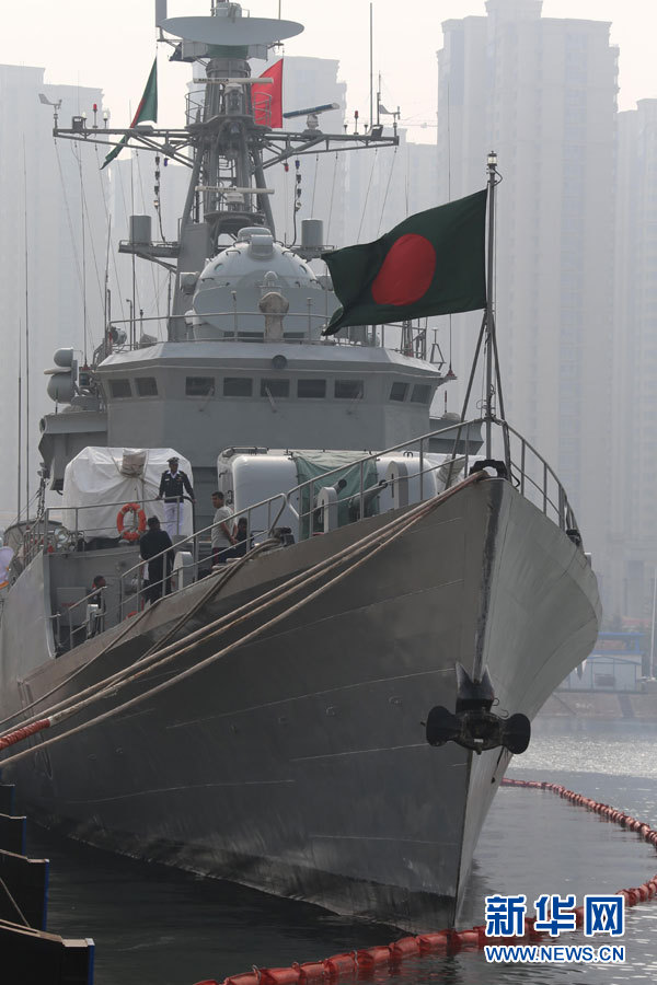 4月19日抵達(dá)青島大港碼頭的孟加拉國(guó)“阿布—巴卡爾”號(hào)護(hù)衛(wèi)艦。新華社記者王建民攝