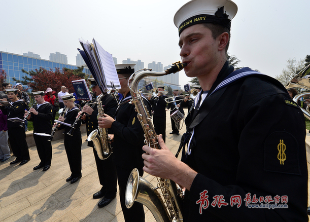 澳大利亞海軍軍樂隊在大港碼頭向前來參觀的市民演出。 記者 李學(xué)亮 攝