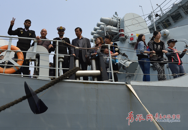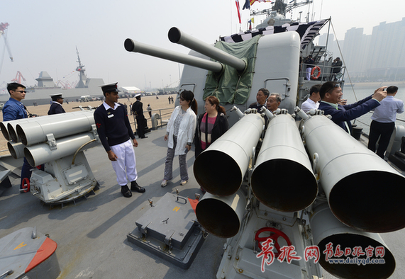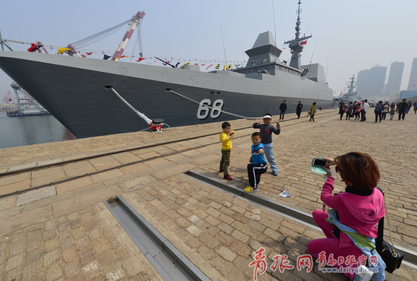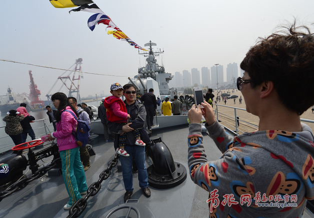 青島日?qǐng)?bào)/青報(bào)網(wǎng)訊 22日上午,參加“海上合作——2014”的多國(guó)海上聯(lián)合演習(xí)的中外參演艦艇舉行開(kāi)放日活動(dòng),民眾熱情高漲,參觀人數(shù)非常多,有的軍迷從西安打“飛的”來(lái)參觀,有的還專門請(qǐng)假帶著老人和孩子一起來(lái)到現(xiàn)場(chǎng),感受海軍的強(qiáng)大。