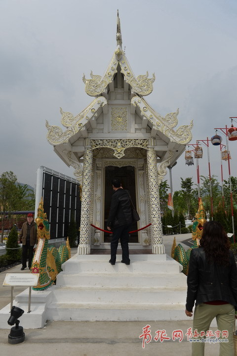 ????青島日報/青報網(wǎng)訊 泰國館無疑是世園會人氣最旺的場館之一。金碧輝煌泰國館就是一個濃縮的泰國。將泰國東南西北中各區(qū)域的文化特點在泰國館里也按照東南西北中體現(xiàn)出來,北部的靈屋、中部的寺廟、泰國南部的鳥籠、清邁的旗幟等都布置到相對稱的位置上。游客們一圈轉(zhuǎn)下來,就能大約了解泰國的文化和民俗等。為了原汁原味地體現(xiàn)泰國的異域文化,除了植物之外,泰國館里所有的物件都是從泰國空運來的,大到巨型旗桿、佛柱、木象,小到一片彩色玻璃、一片指頭肚兒大小的金片都是泰國原產(chǎn)的。(圖/文 青島日報/青報網(wǎng)記者 邢志峰)