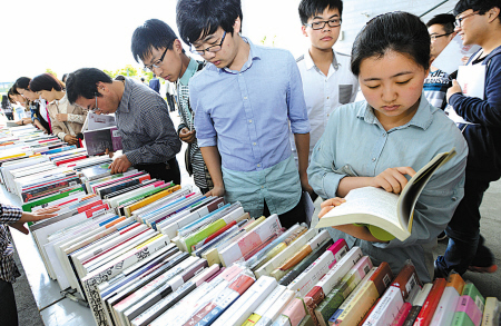圖為市民在“精品圖書進(jìn)校園”活動(dòng)中選購(gòu)書籍。