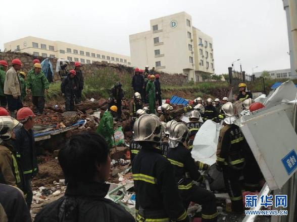 這是5月11日拍攝的擋土墻倒塌救援現場(手機拍攝)。當日5時48分,山東省再生能源公司黃島生產加工點因暴雨積水導致擋土墻倒塌,壓倒職工居住板房,造成18人死亡,3人受傷。目前,現場搜救工作基本結束,事故原因正在深入調查,各項善后工作正進行。新華社發(fā)