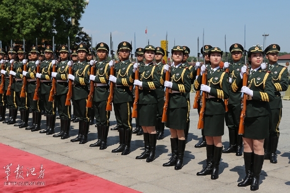 ????“近年來,中國女軍人不僅在作戰(zhàn)、訓(xùn)練及各項任務(wù)中的作用日益凸顯,而且逐步走向國際交流的舞臺,如在亞丁灣護(hù)航和在執(zhí)行維和任務(wù)的隊伍中,中國女軍人用自信、進(jìn)取與奉獻(xiàn),書寫著颯爽英姿的美麗。如今增加儀仗女隊員,不僅是和國際接軌對外交往的需要,更能體現(xiàn)出‘中華兒女多奇志’,一起保衛(wèi)祖國的壯志豪情。”軍事科學(xué)院有關(guān)研究專家表示。站在空軍護(hù)旗手位置的儀仗女隊員程誠激動地說:“作為第一批儀仗女兵,不僅僅代表三軍,更代表祖國,我感到無比自豪和幸運!”