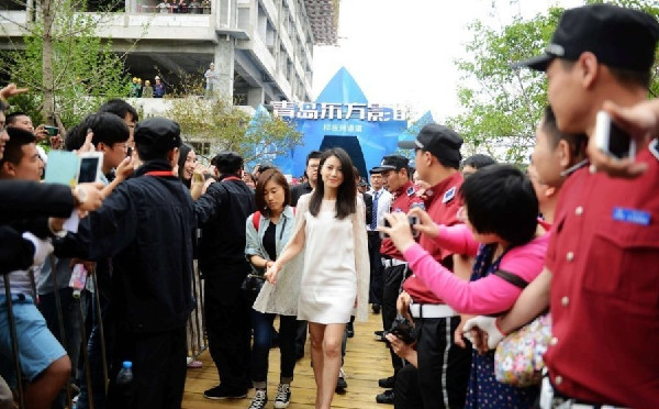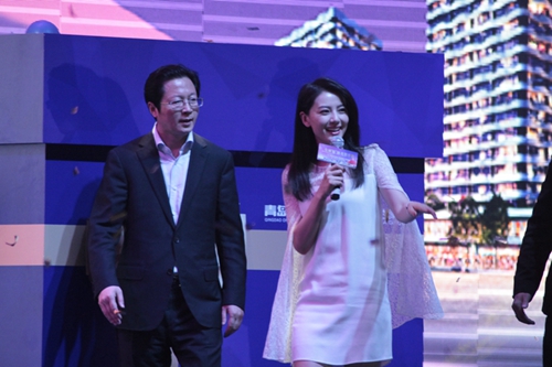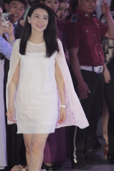 高圓圓5月18日親臨島城,出席東方影都海景樣板間開放盛典,并為主辦方舉辦的婚紗秀活動(dòng)頒獎(jiǎng)。