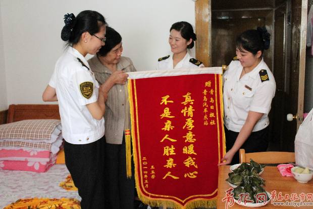 ????青島日報/青報網(wǎng)訊 端午節(jié),粽飄香。可是對于患有重度肌無力多年的空巢老人王玉芳來說,能吃上自己家里包的粽子,是一種奢望。可是,28日上午,交運集團580我?guī)湍?名志愿者,讓老人這個多年的愿望變成了現(xiàn)實。為了表達自己的謝意,老人也給了記者和志愿者一份“驚喜”:由她托人制作的錦旗。