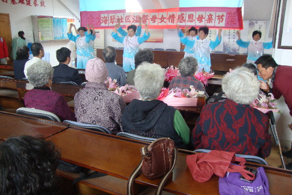為弘揚(yáng)孝敬父母的傳統(tǒng)美德,母親節(jié)前夕,海琴社區(qū)邀請了孤寡、獨(dú)居、空巢老人來到社區(qū)活動室,在社區(qū)工作人員的陪同下,度過了難忘的母親節(jié)。社區(qū)黨員代表為老人們獻(xiàn)上了康乃馨,并為每位老人洗腳,最后為老人表演了自編自演的口琴、合唱、舞蹈、葫蘆絲等節(jié)目。