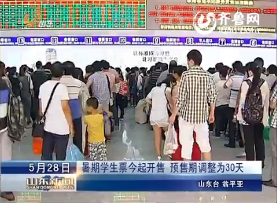 ????據(jù)山東廣播電視臺新聞中心《山東新聞聯(lián)播》報道 濟南鐵路局暑期學生票今天起正式開售。為方便學生,鐵路部門將6月25日至9月10日期間的學生車票最長預售期調整為30天。鐵路網站、電話等售票渠道同步發(fā)售。針對學生購、取票密集時間段,鐵路部門還將在發(fā)售學生票較大的車站設立???,確保學生購票暢通。