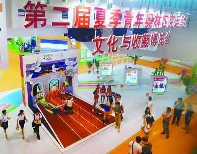5月30日,南京青奧會文化與收藏博覽會在南京國際博覽中心舉行。本次博覽會展示了琳瑯滿目的奧林匹克珍貴紀念品,并推出眾多豐富多彩的互動活動。 本報記者 崔曉攝