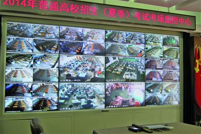 ????今天上午9點(diǎn),2014年山東省高考大幕將拉開(kāi),全市38582名考生將在11個(gè)考區(qū)1313個(gè)考點(diǎn)進(jìn)行為期兩天的考試。昨天,記者探訪市招辦監(jiān)控中心發(fā)現(xiàn),監(jiān)控系統(tǒng)已經(jīng)提前運(yùn)行,考場(chǎng)、試卷保密室已經(jīng)無(wú)死角監(jiān)控。