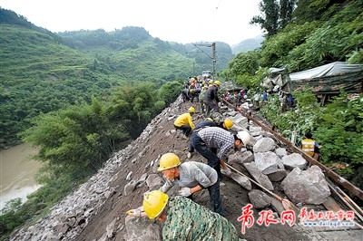 6月5日15時(shí)許,受連日暴雨影響,重慶市綦江境內(nèi)川黔鐵路兩河口站至鎮(zhèn)紫街站間發(fā)生山體滑坡,導(dǎo)致途經(jīng)此區(qū)段的多趟列車受到影響,往返重慶、貴州、成都等地的。目前,搶修仍在進(jìn)行中。新華社照片