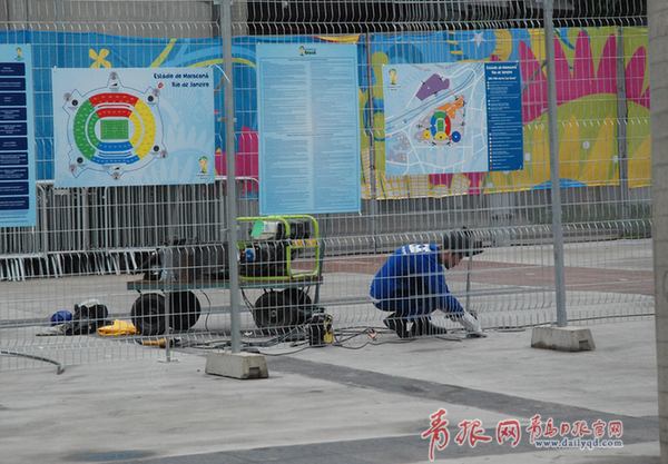 #前線直擊#巴西世界杯的籌備建設(shè)工作廣受詬病,今天仍有工人在馬拉卡納體育場外進(jìn)行修補工作。