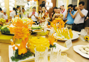昨日,在西安皇城豪門酒店舉行的絲綢之路國際美食精品展現(xiàn)場,一道道活色生香的特色菜肴讓人垂涎欲滴,其中,西安飯莊推出的“盛唐絲路花雨宴”吸引了眾人的目光。一座“飛天反彈琵琶”造型置于餐臺中央,雁塔晨鐘八味碟、絲路長安鹵汁參、紅花駝?wù)?、秦唐葫蘆雞、月牙泉水浸蜜豆等菜點(diǎn)環(huán)繞四周,這些菜品有的是利用絲路沿線城市的特色食材烹制而成,有的是以獨(dú)特的創(chuàng)意呈現(xiàn)絲路著名景點(diǎn)風(fēng)貌,不僅色香味俱全,還飽含文化深意,讓人口口留香。活動(dòng)現(xiàn)場,各餐飲企業(yè)八仙過海各顯神通,招牌菜肴、代表菜品、特色菜品、絲路概念菜肴各有千秋,目不暇接。