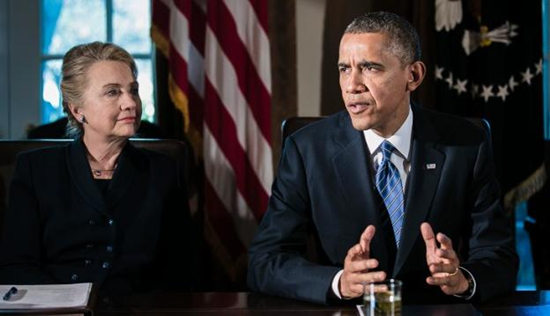資料圖:美國總統(tǒng)奧巴馬與前國務卿希拉里