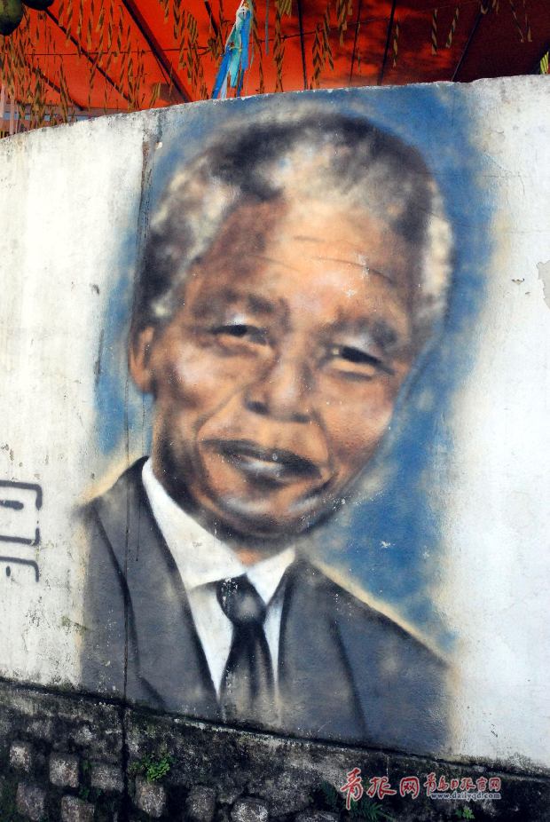 曼德拉的畫像出現(xiàn)在貧民窟的街道墻上