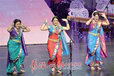??? 由青島市人民政府主辦,青島市文學(xué)藝術(shù)界聯(lián)合會(huì)、青島市人民政府外事辦公室協(xié)辦的青島首屆國(guó)際友好城市藝術(shù)節(jié)昨晚在青島大劇院舉行。圖為來(lái)自印度孟買(mǎi)市的藝術(shù)家表演的舞蹈《群舞》。周光輝攝