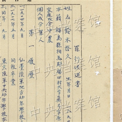 中央檔案館公布45名日本侵華戰(zhàn)犯親筆供詞