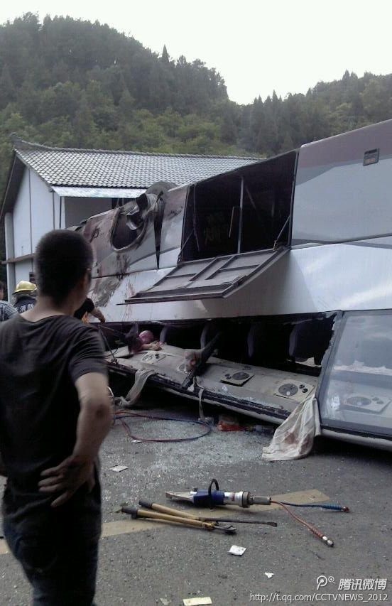 【武隆車禍傷者實為36人】出事大巴屬于重慶新世界公共交通有限公司,由重慶美途旅游公司租用,核載55人,實載53人。事發(fā)時該車正由仙女山返回縣城(下行)途中,至楊叉嶺處發(fā)生側(cè)翻,造成6人當(dāng)場死亡,36人受傷入院,其中5人重傷。(央視記者牟亮)