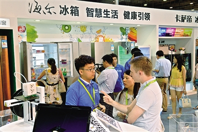2014青島國際消費電子博覽會上,海爾全面推出智能空調(diào)、智能電視、智能冰箱等智慧家電新品。