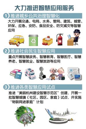 ????圍繞智慧民生,杭州將以建設信息消費、信息惠民國家試點城市為契機,加大互聯(lián)網(wǎng)、大數(shù)據(jù)、云計算、物聯(lián)網(wǎng)等現(xiàn)代信息技術在民生服務和保障領域的應用力度,重點是開展智慧政務、智慧教育、智慧醫(yī)療、智慧養(yǎng)老、智慧就業(yè)、智慧旅游等應用,建成覆蓋城鄉(xiāng)、全民共享的智慧民生服務體系。