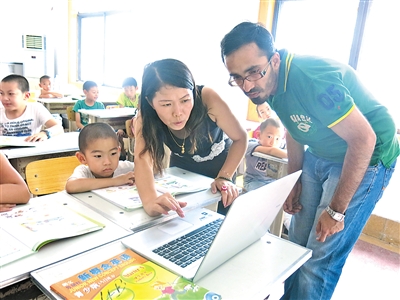 ??? 青島日?qǐng)?bào)/青報(bào)網(wǎng)訊 昨日,李滄區(qū)興華路街道暑期文化公益大課堂迎來了一位“洋老師”——TOM。 “從7月21日起到8月22日,我每個(gè)周一都要到這里來教孩子們說英語(yǔ),我很高興?!盩OM說。