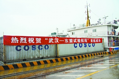 ????據(jù)這條航線承運人武漢中遠國際貨運公司負責人介紹,目前,該公司承運武漢來往泰越集裝箱約為1700標箱,航線開通后,目標將鎖定每年8000標箱。這條航線的開通將初步實現(xiàn)武漢長江中游航運中心“承東啟西、通江達?!焙竭\樞紐服務功能,形成中西部地區(qū)出???。