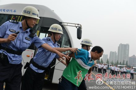 ??? 青島日報(bào)/青報(bào)網(wǎng)記者 邢志峰 今年5月27日,在交運(yùn)溫馨巴士607路上,有乘客要提前下車遭到駕駛員拒絕后,情緒激動用螺絲刀威脅駕駛員。為幫助駕駛員提高應(yīng)對諸如此類的突發(fā)事件,7月22日,溫馨巴士公司聯(lián)手公安市北分局進(jìn)行應(yīng)急演練。