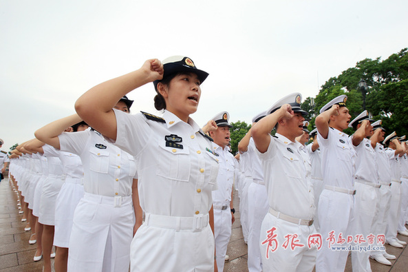 ????120年后,北海艦隊組織某水警區(qū)和某訓練基地四大隊的400余名官兵走進劉公島,開展“銘記甲午恥、踐行強軍夢”水兵集體宣誓簽名活動,紀念甲午戰(zhàn)爭爆發(fā)120周年,讓官兵在重溫歷史中牢記國恥,在緬懷英烈中激發(fā)斗志,在銘記使命中認清擔當。