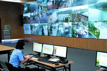 記者來到世園大廈9樓安保監(jiān)控室,剛一進去,立刻被掛在正前方的巨大屏幕所吸引,正前方的大屏幕上顯示的是世園會內(nèi)各個出口和重要地方的視頻監(jiān)控。通過這些高清監(jiān)控,園區(qū)內(nèi)和周邊的一切景象都一覽無余。據(jù)了解,世園會內(nèi)外共安裝了1000多個攝像頭,這些攝像頭都可以360度旋轉,全天24小時工作。