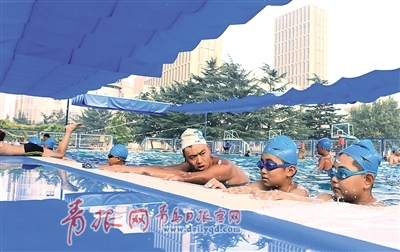據(jù)即墨市體育中心主任孫寧介紹,“移動游泳池”長25米,寬15米,水深1.2米,有6條泳道,配備更衣室、醫(yī)務室、水處理設備、遮陽棚、照明系統(tǒng)、救生系統(tǒng)、監(jiān)控系統(tǒng)等設施。暑假結(jié)束后,即可拆裝搬走。目前已有1000多名小學生在這里學習游泳。