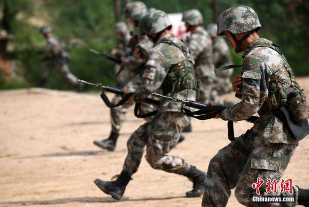 7月底,駐青島某部海防團(tuán)在青島市嶗山區(qū)一處深山展開軍事科目演練。據(jù)了 解,這個(gè)海防團(tuán)分散駐守在青島海防一線,是海岸防御的前哨陣地。近幾年來(lái),該團(tuán)立足現(xiàn)有裝備,練戰(zhàn)術(shù)、練謀略;結(jié)合使命任務(wù),積極探索研究新訓(xùn)法、新戰(zhàn)法,軍事訓(xùn)練水平逐年提升,在各類比武中勇奪數(shù)十塊金牌,5人被濟(jì)南軍區(qū)評(píng)為 “愛軍精武標(biāo)兵”,實(shí)現(xiàn)了軍事訓(xùn)練一級(jí)團(tuán)7連冠。中新社發(fā) 徐崇德 攝