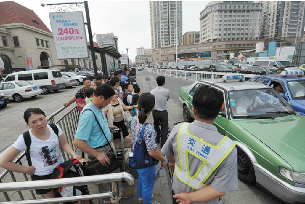 ????目前青島已進(jìn)入旅游旺季,大量游客乘火車進(jìn)入青島市,青島火車站出租車“打車難”問題突出。7月31日,記者獲悉,為解決此問題,市運管局加強(qiáng)對到站人員的疏散,并印發(fā)了《關(guān)于做好2014年旅游季節(jié)火車站出租汽車運力保障工作的通知》,全力做好火車站運力保障。