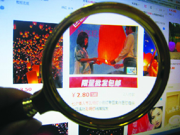 為躲避檢查,孔明燈銷售已多由實(shí)體店轉(zhuǎn)戰(zhàn)網(wǎng)絡(luò)