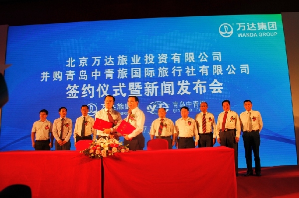 青報(bào)網(wǎng)訊? 7月30日上午,萬達(dá)集團(tuán)旗下北京萬達(dá)旅業(yè)投資有限公司并購青島中青旅國際行社有限公司簽約儀式暨新聞發(fā)布會(huì)在萬達(dá)艾美酒店舉行。萬達(dá)旅業(yè)將與青島中青旅共同成立萬達(dá)青島中青旅國際旅行社有限責(zé)任公司,由萬達(dá)旅業(yè)控股,這是萬達(dá)集團(tuán)進(jìn)軍旅游業(yè)以來第六家并購的旅行社,該公司將作為萬達(dá)旅業(yè)山東總部,未來三年內(nèi)將打造成為山東省行業(yè)龍頭,營業(yè)額預(yù)計(jì)達(dá)到10億元。