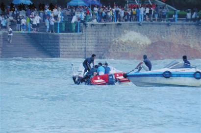 這邊田剛和同事們忙著從海里把落水游客往岸上拖,那邊又有三人被浪頭帶進(jìn)了海里。田剛和同事們只好再次返回海里救人。半個多小時里,“金山789”、“金山109”兩艘快艇、8名員工聯(lián)手救起了5撥落水游客,總共16人。 “好在很快110民警和邊防派出所民警都趕到了現(xiàn)場,加上我們的同事在岸上疏導(dǎo),游客才漸漸退到安全區(qū)域。 ”田剛說,16名游客落水在棧橋景點引起了不小的騷動,不過也給游客提了醒,讓大家知道了海浪的厲害。