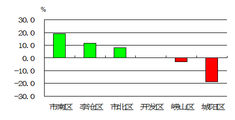 ????從各轄區(qū)情況來(lái)看,各區(qū)主要污染物濃度同比變化情況差異較大??諝赓|(zhì)量由好到差依次是:市南區(qū)、嶗山區(qū)、市北區(qū)、城陽(yáng)區(qū)、開(kāi)發(fā)區(qū)、李滄區(qū)。