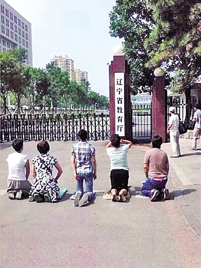 ■考生家長(zhǎng)在遼寧省教育廳門前下跪,為孩子落榜討說(shuō)法。