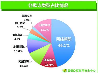 根據(jù)網(wǎng)友投訴及申請理賠的類型來看,網(wǎng)絡(luò)兼職、網(wǎng)絡(luò)游戲、退款欺詐、虛假購物、消保欺詐、網(wǎng)上博彩、視頻交友、投資理財、虛假團購、虛假票務(wù)、批發(fā)欺詐、網(wǎng)購木馬、虛假中獎、話費充值和虛假藥品15類是今年上半年最為常見的網(wǎng)絡(luò)欺詐類型。其中網(wǎng)絡(luò)兼職類欺詐的報案人數(shù)為5904人,是報案數(shù)量最多的欺詐類型。而退款欺詐則是今年上半年大規(guī)模集中爆發(fā)的一種網(wǎng)絡(luò)欺詐手段。一般騙子會謊稱交易失敗,要幫助消費者辦理退款,并最終將消費者引入釣魚網(wǎng)站,盜刷消費者網(wǎng)銀。據(jù)業(yè)內(nèi)人士分析,這類詐騙大規(guī)模爆發(fā),很有可能是用戶的消費信息遭到大規(guī)模泄露。