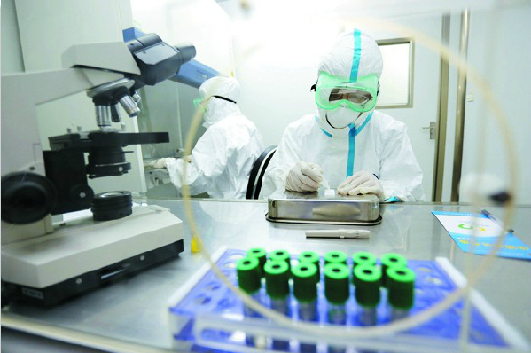 機(jī)場(chǎng)檢驗(yàn)檢疫局工作人員對(duì)試劑進(jìn)行測(cè)試