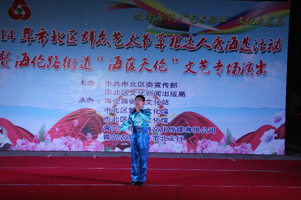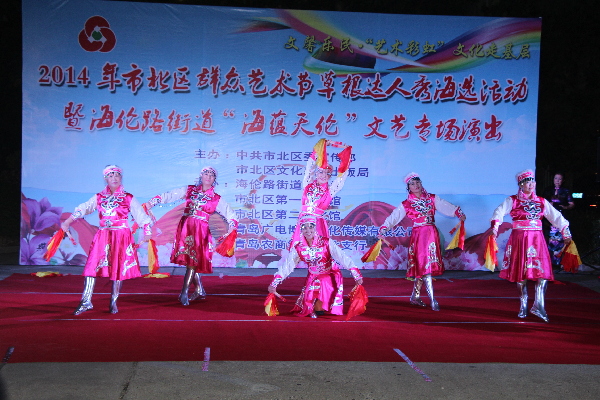 據(jù)了解,2014年市北區(qū)群眾文化藝術(shù)節(jié)規(guī)模盛大,打破了以往的形式,以全面開放姿態(tài)面向廣大居民,在全區(qū)19個街道舉辦19場海選,活動報名無門檻、無限制,從往年讓街道和社區(qū)的文化隊伍來展示轉(zhuǎn)變?yōu)榘盐枧_交給群眾變?yōu)槲襾硌?,只要有才藝、有絕活,會唱會跳有膽量,這里就是你的舞臺;只要能歌善舞、敢唱敢跳,有展示自我的愿望,展示自己的風采,這個舞臺就是屬于我們每一個人。