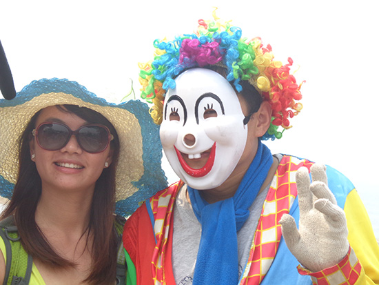 穿上可愛的卡通服,先跟游客合照,然后向游客伸手要錢:一次20元。