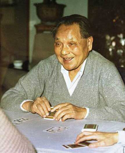鄧小平打橋牌。鄧小平曾戲稱自己之所以保持健康有四個原因:一打橋牌,二游泳,三吸煙,四喝酒。