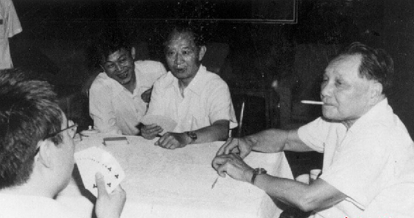 1984年胡耀邦和鄧小平一起參加“運(yùn)籌與健康”橋牌邀請(qǐng)賽。